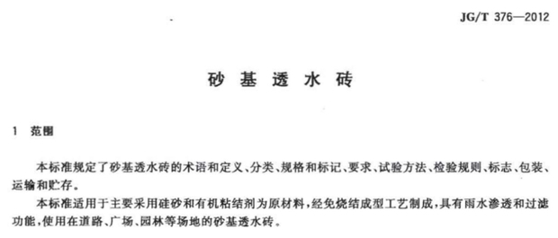 建筑工业行业标准JG/T 376-2012《砂基透水砖》